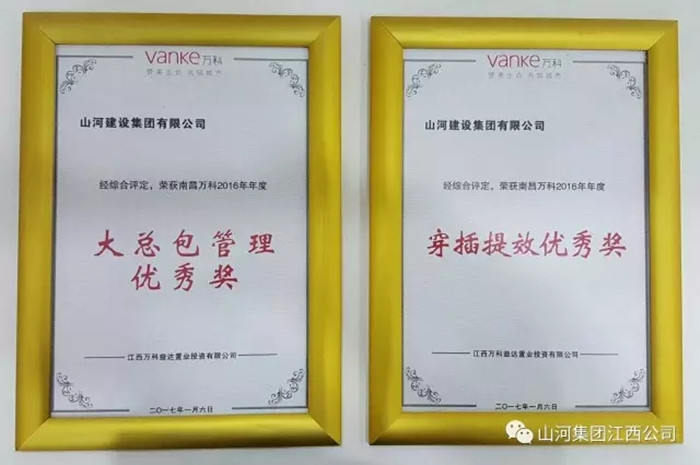 近年来,山河集团始终坚持以高品质、高标准、高要求进行施工管理。此次获奖,奠定万科优秀合作伙伴的基础,承载万科对山河集团的认可和信任,激励全体山河人坚持“筑品质山河 成百年基业”的企业愿景,为业主提供更加优质的产品与服务!