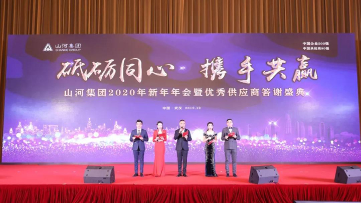12月29日,在美丽的东湖之畔,“砥砺同心 携手共赢——山河集团2020年新年年会暨优秀供应商答谢盛典”在武汉东湖国际会议中心盛大举行。特邀领导和嘉宾,优秀供应商代表,控股集团、建设集团、地产集团全体人员及区域公司、分子公司员工等1300余人齐聚一堂,共同见证了这场年度盛宴。
