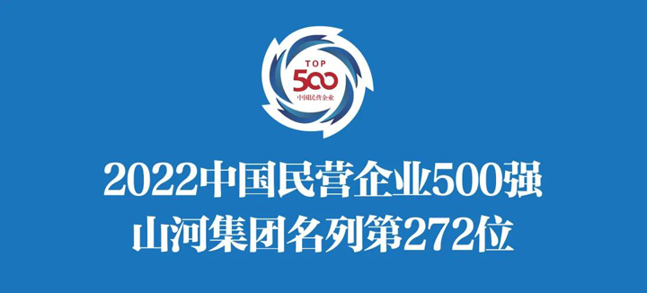 9月7日,中华全国工商业联合会发布“2022中国民营企业500强”榜单,山河集团名列第272位,这也是集团连续第10年上榜。